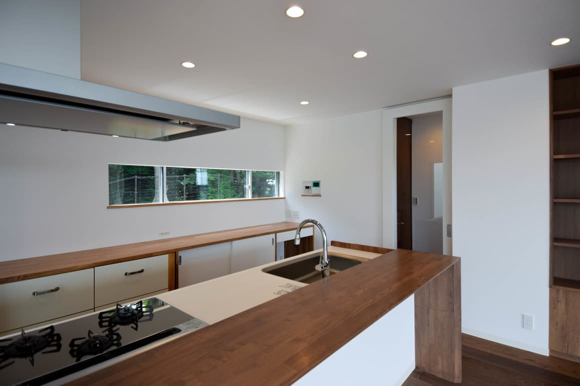 はじめてお会いしたのは、土地を決定するかどうかのタイミングだったかと思います。キッチンを中心としたLDKの空間構成やキッチンの対面カウンターで食事ができるダイニングの具体的なイメージをお聞かせいただいた記憶が印象に残っています。またその際、風景や環境を大切にされていることをはじめ、KM様のセンスの良さを実感した覚えがあります。このあたりが設計を組み立てる上でうまく共有できた部分ではないかと思っています。